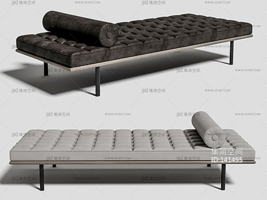 现代意式床尾凳_床尾凳组合_沙发凳_皮革床尾凳_布艺床尾凳_长条凳SU模型su草图模型下载