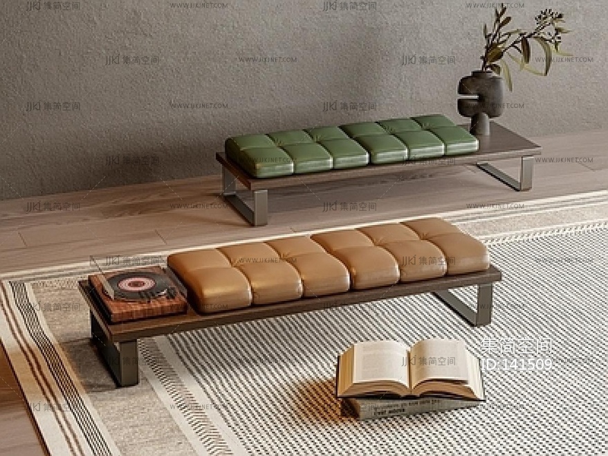现代意式床尾凳_床尾凳组合_沙发凳_皮革床尾凳_布艺床尾凳_长条凳SU模型su草图模型下载