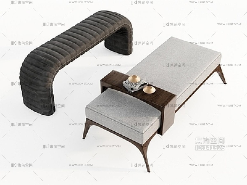现代意式床尾凳_床尾凳组合_沙发凳_皮革床尾凳_布艺床尾凳_长条凳SU模型su草图模型下载