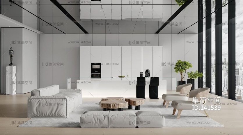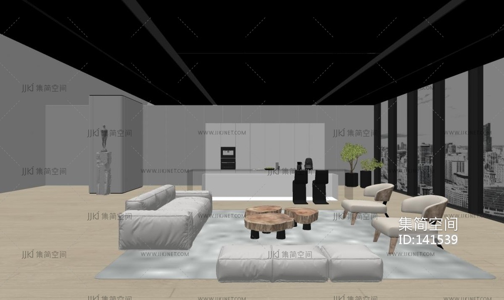 现代极简办公茶水间 su草图模型下载 [模型ID:141539]