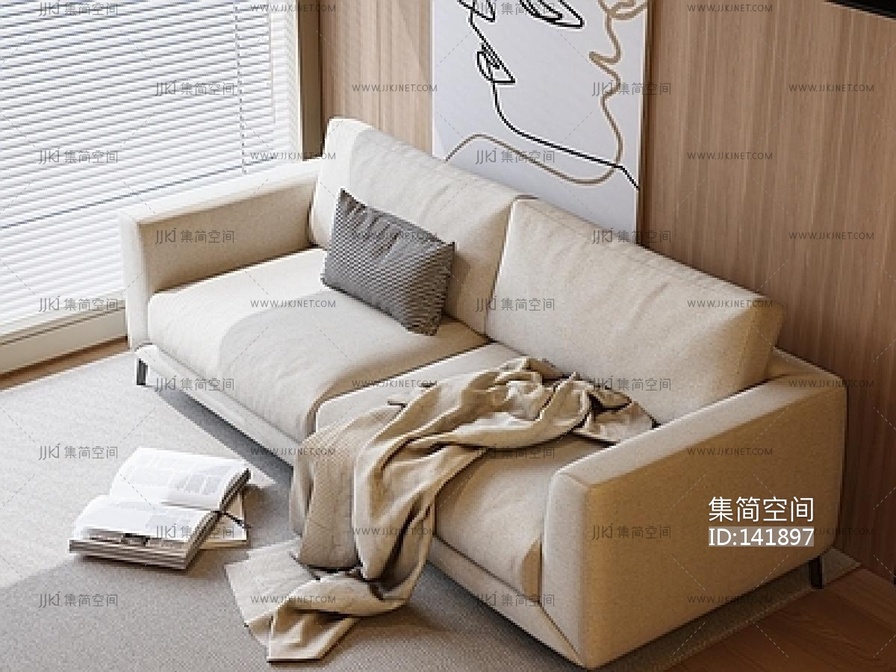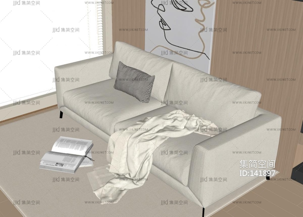 侘寂风多人沙发,落地灯组合SU模型su草图模型下载
