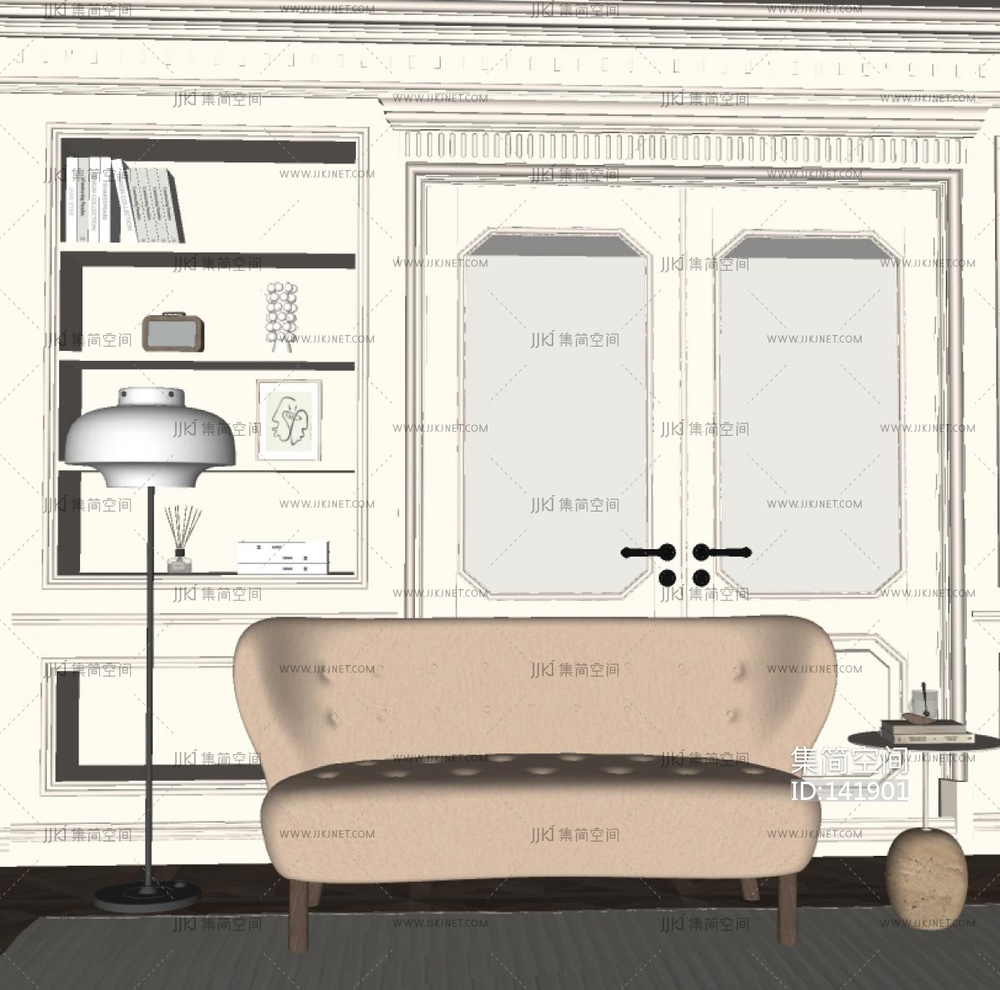 侘寂风多人沙发,落地灯组合SU模型su草图模型下载
