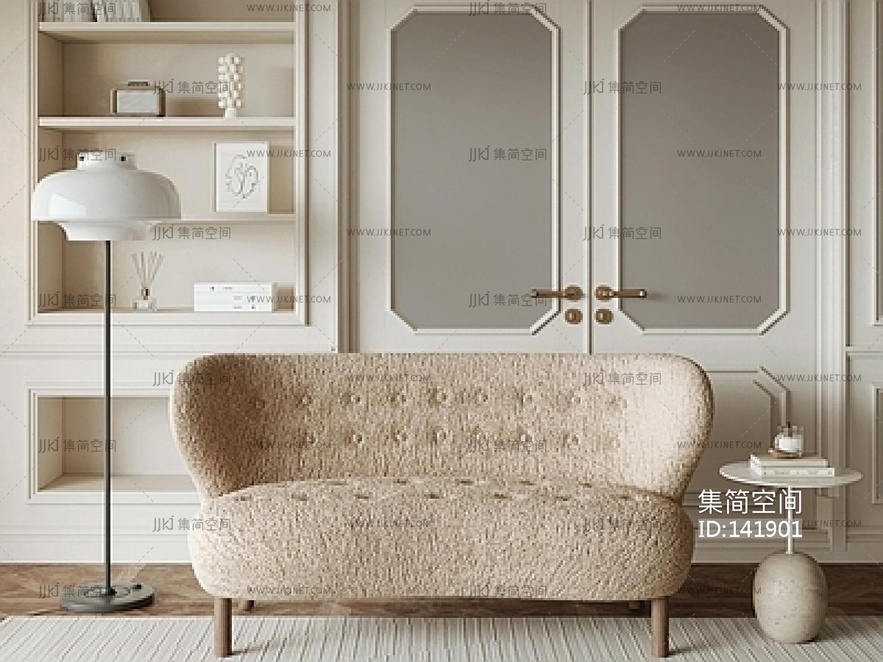 法式羊羔绒双人沙发SU模型 su草图模型下载 [模型ID:141901]