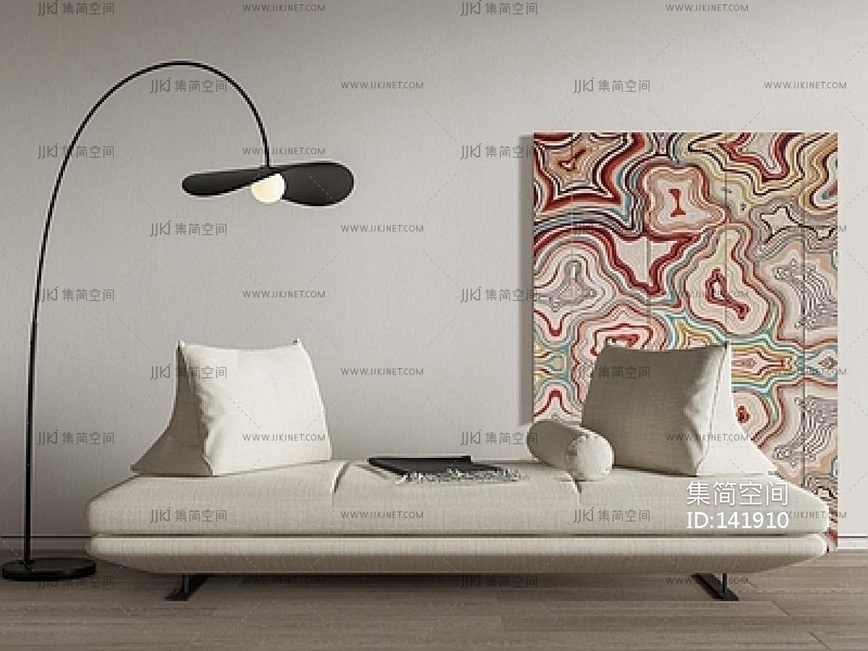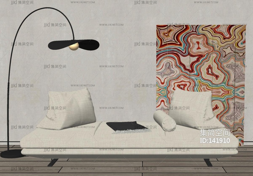 侘寂风多人沙发,落地灯组合SU模型su草图模型下载
