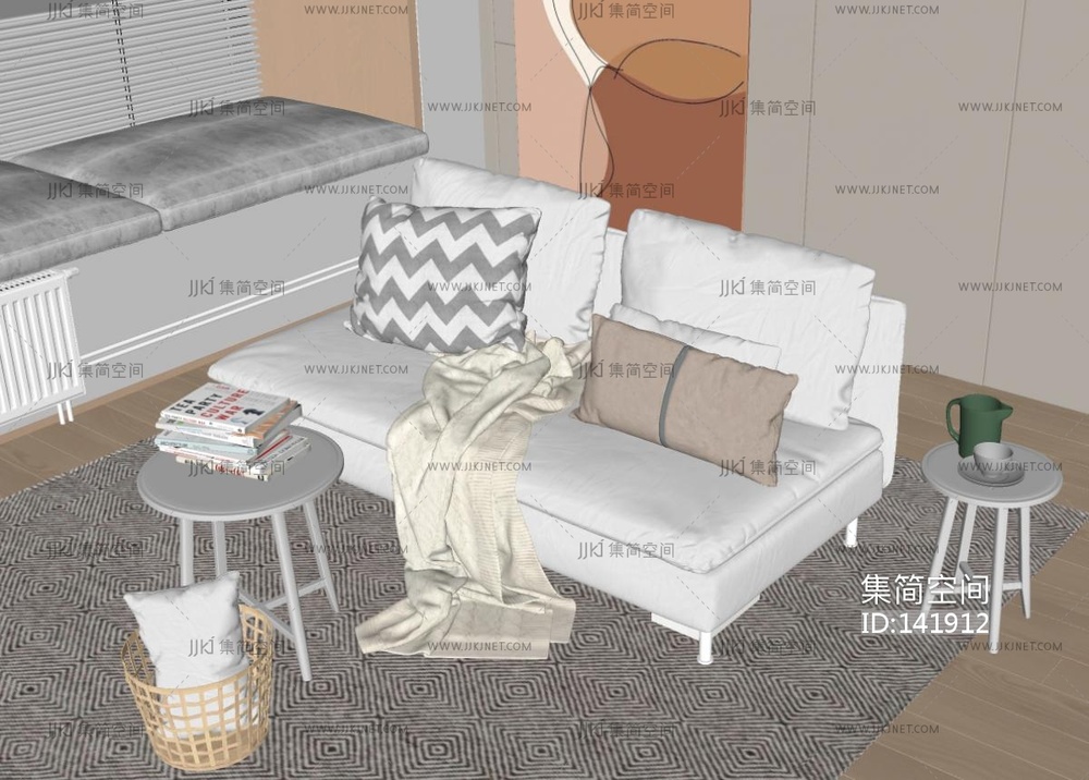 侘寂风多人沙发,落地灯组合SU模型su草图模型下载