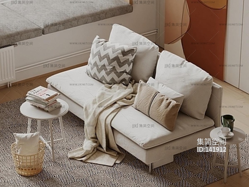 现代奶油风双人沙发SU模型 su草图模型下载 [模型ID:141912]