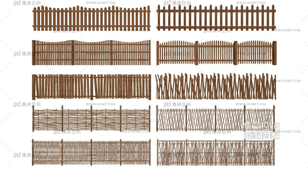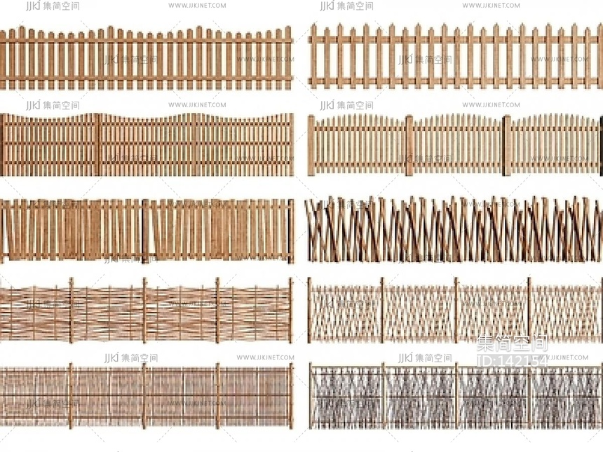 新中式竹篱笆栅栏,围栏护栏SU模型su草图模型下载