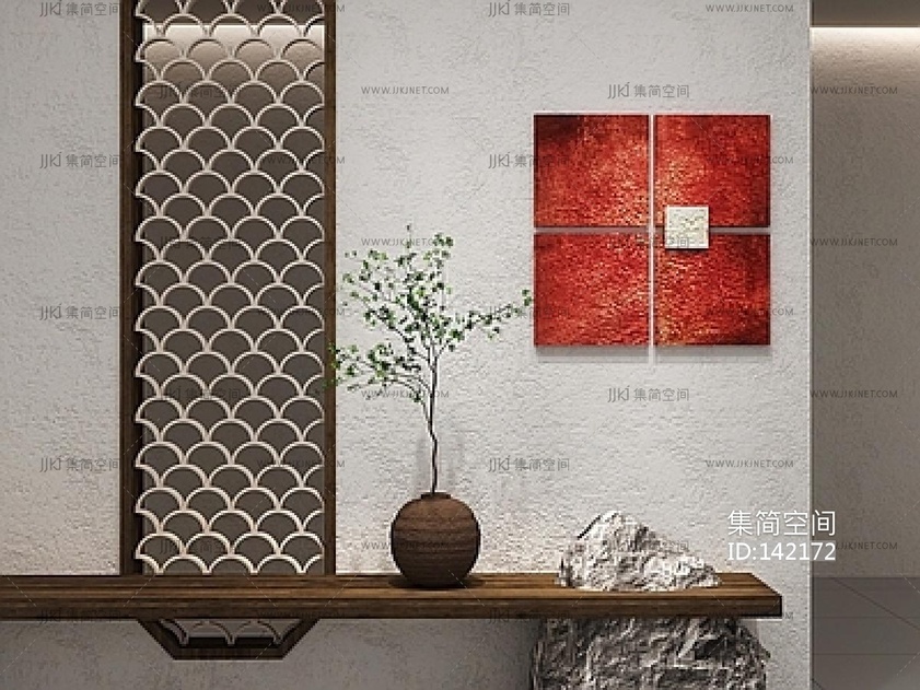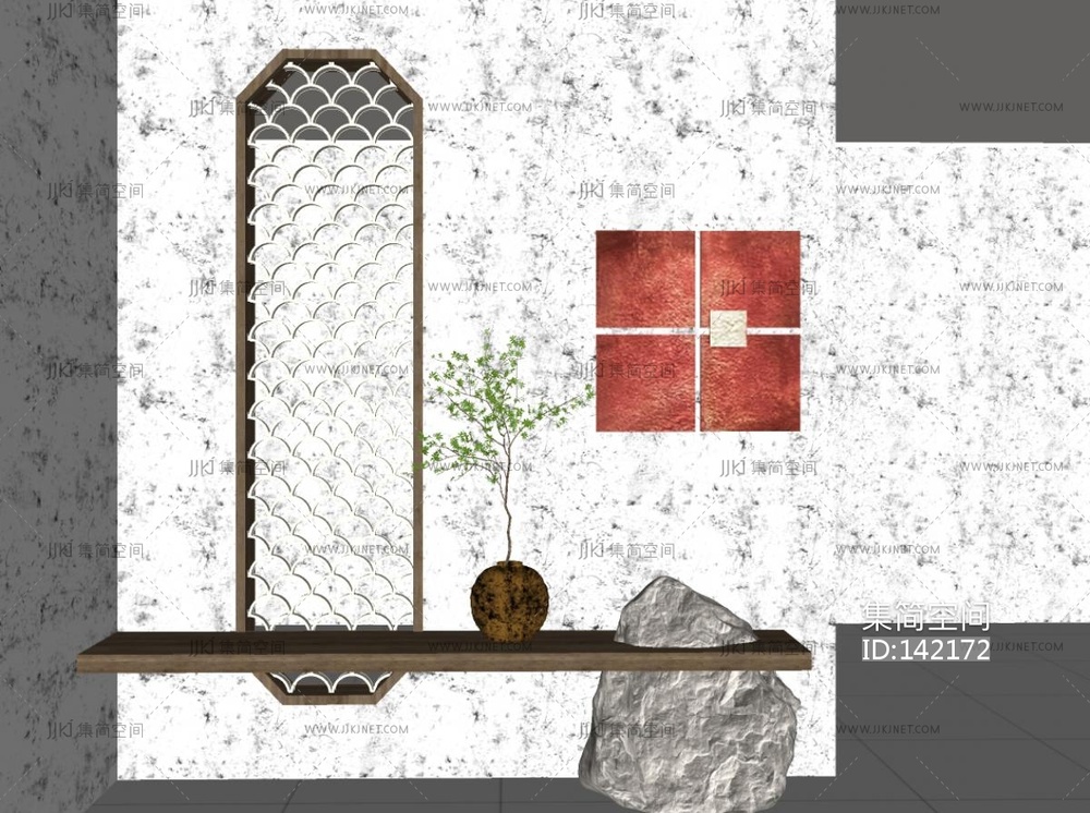 新中式装饰性玄关SU模型 su草图模型下载 [模型ID:142172]