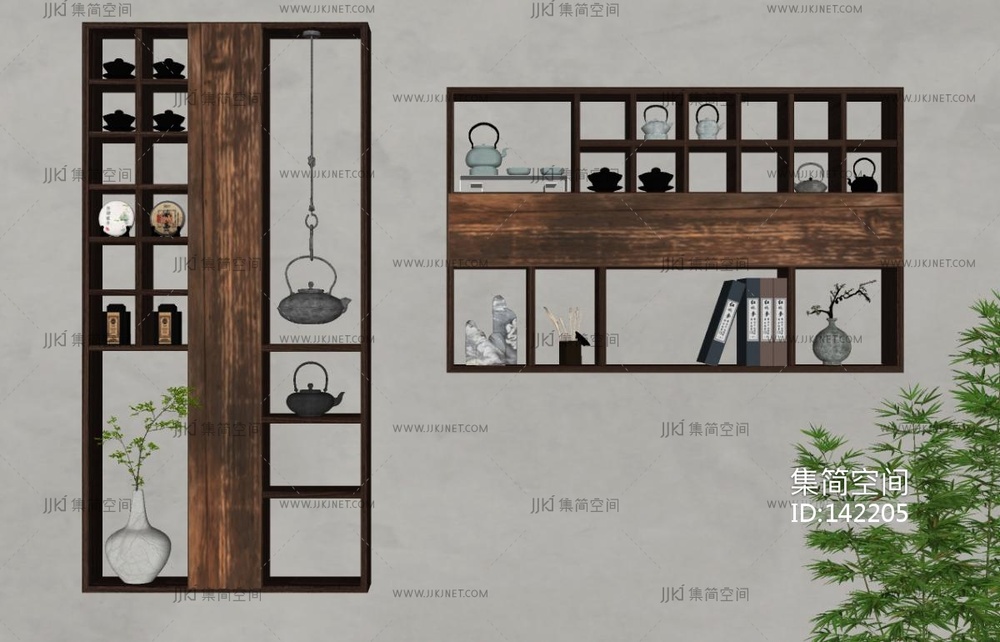 新中式装饰柜,吊柜,壁柜SU模型 su草图模型下载 [模型ID:142205]