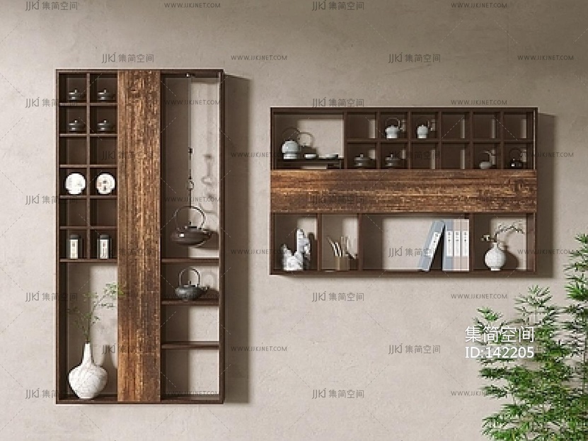 侘寂挂壁式茶柜,装饰柜SU模型su草图模型下载