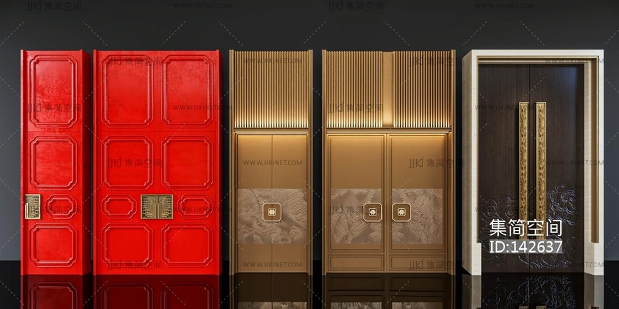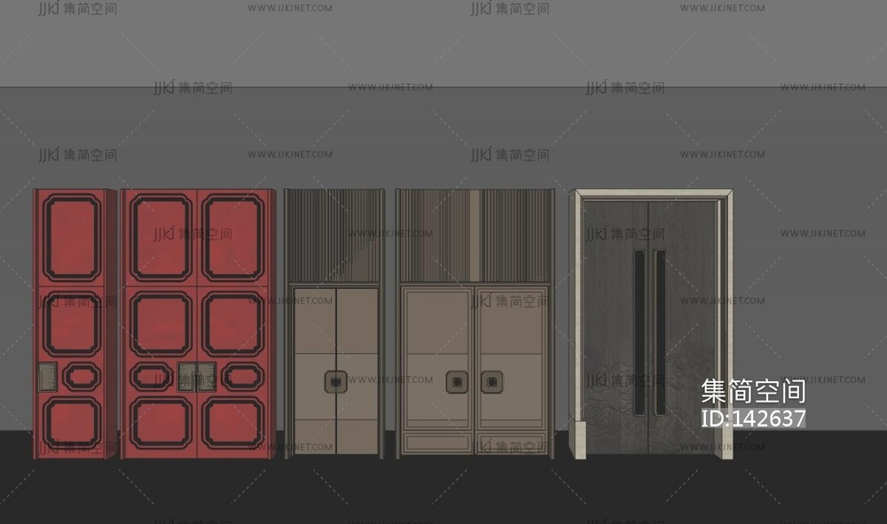 新中式门 双开门 su草图模型下载 [模型ID:142637]
