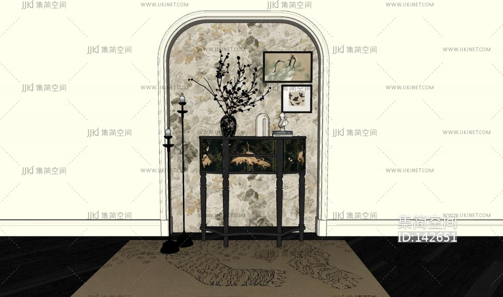 中古风装饰边柜 su草图模型下载 [模型ID:142651]