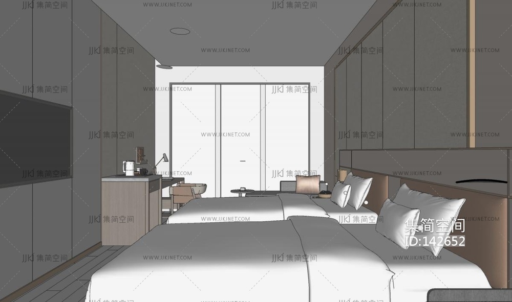 -现代酒店客房 su草图模型下载 [模型ID:142652]