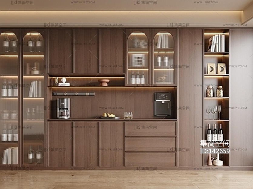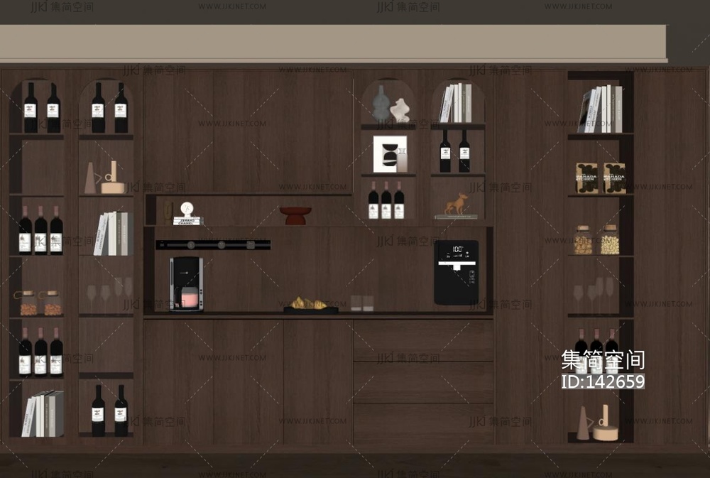 现代中古风酒柜SU模型su草图模型下载