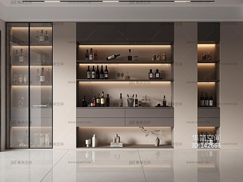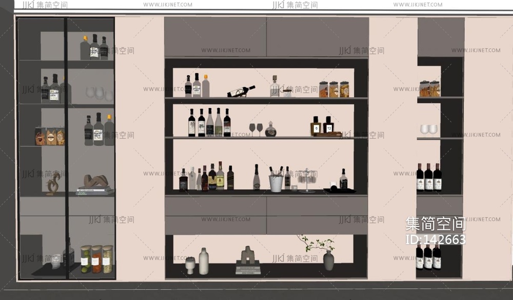 现代酒柜SU模型 su草图模型下载 [模型ID:142663]
