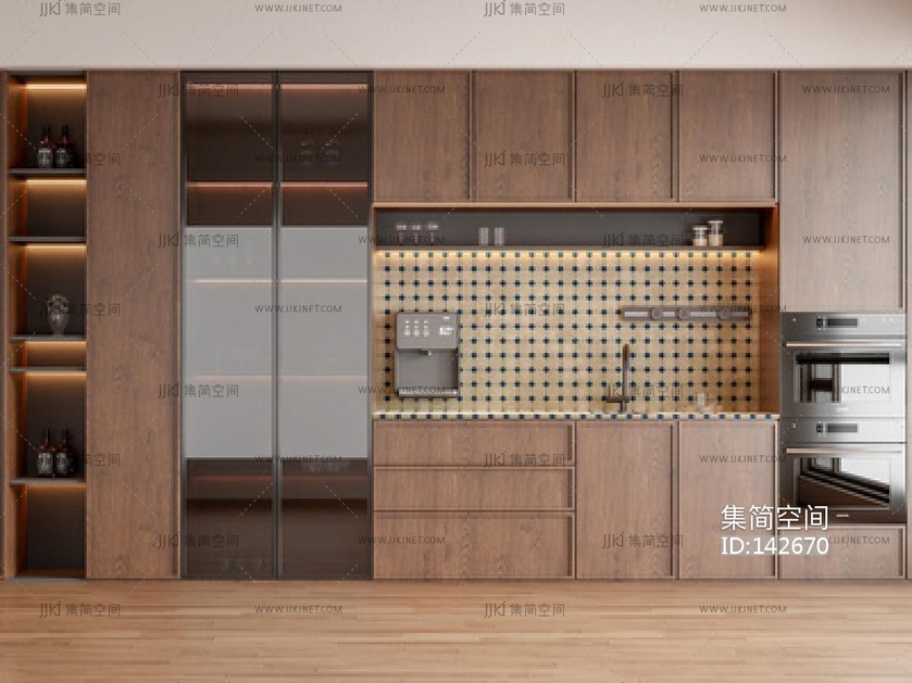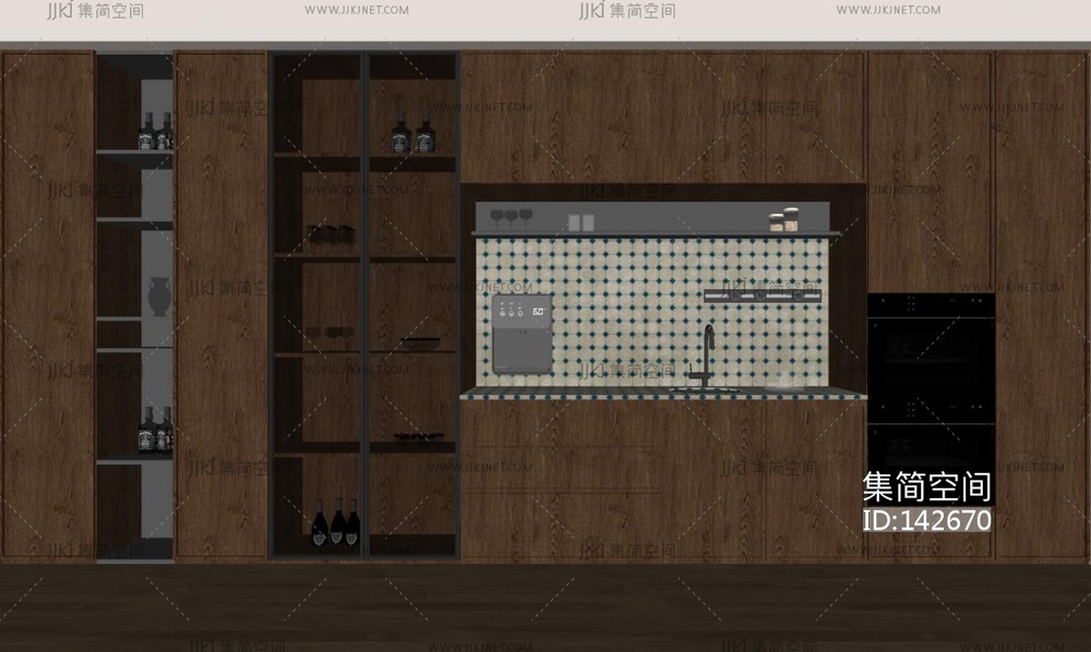 现代中古风酒柜SU模型 su草图模型下载 [模型ID:142670]