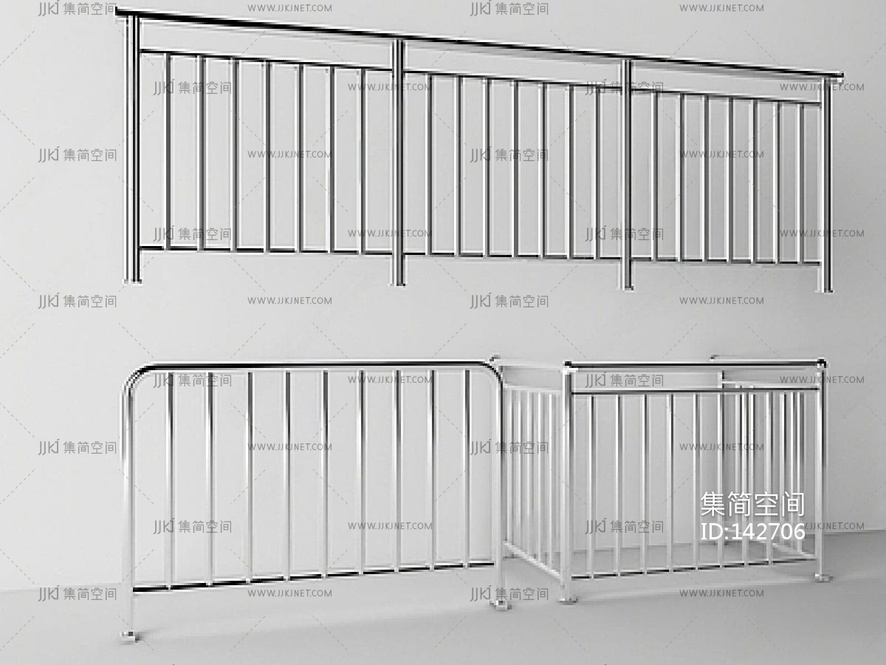 现代不锈钢栏杆,防护栏SU模型 su草图模型下载 [模型ID:142706]