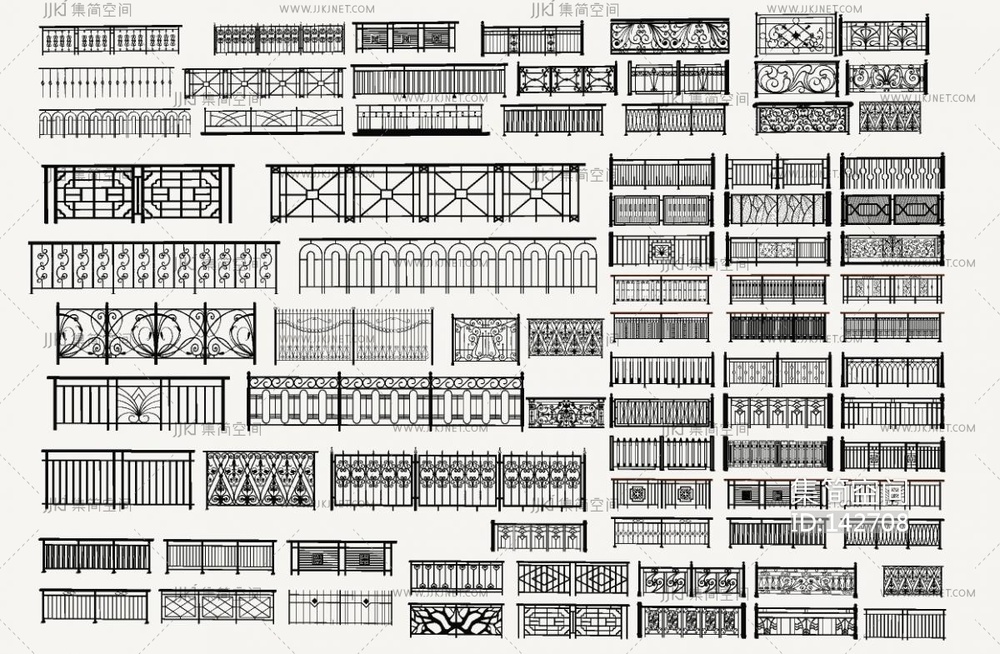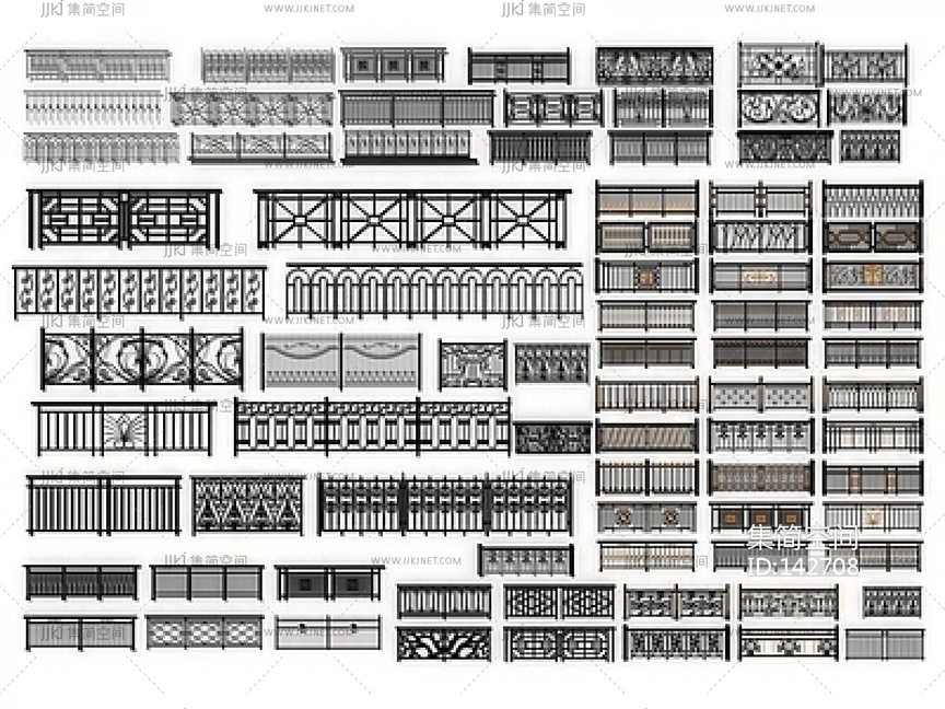 现代铁艺栏杆扶手,防护栏SU模型 su草图模型下载 [模型ID:142708]