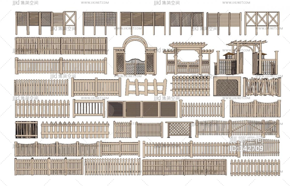 现代木栅栏,围栏SU模型 su草图模型下载 [模型ID:142709]