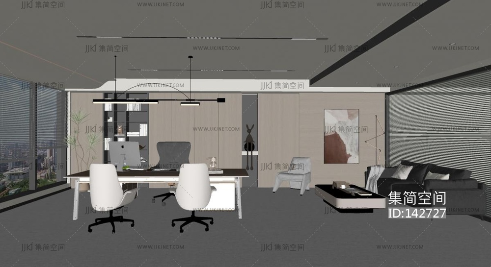 现代总经理办公室SU模型 su草图模型下载 [模型ID:142727]