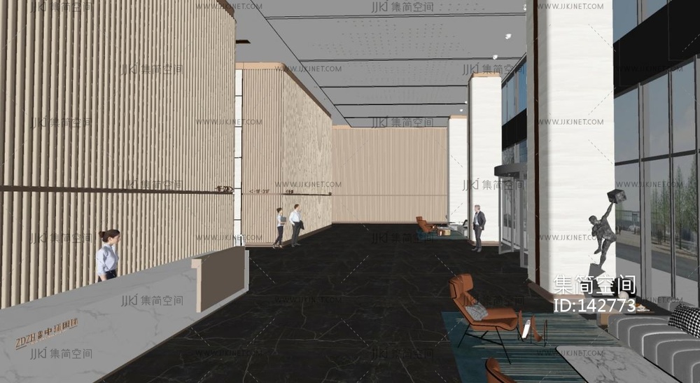 现代公司大堂SU模型 su草图模型下载