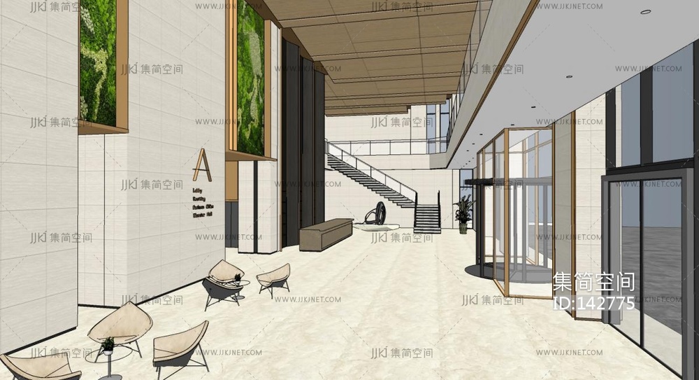 现代办公大堂SU模型 su草图模型下载 [模型ID:142775]