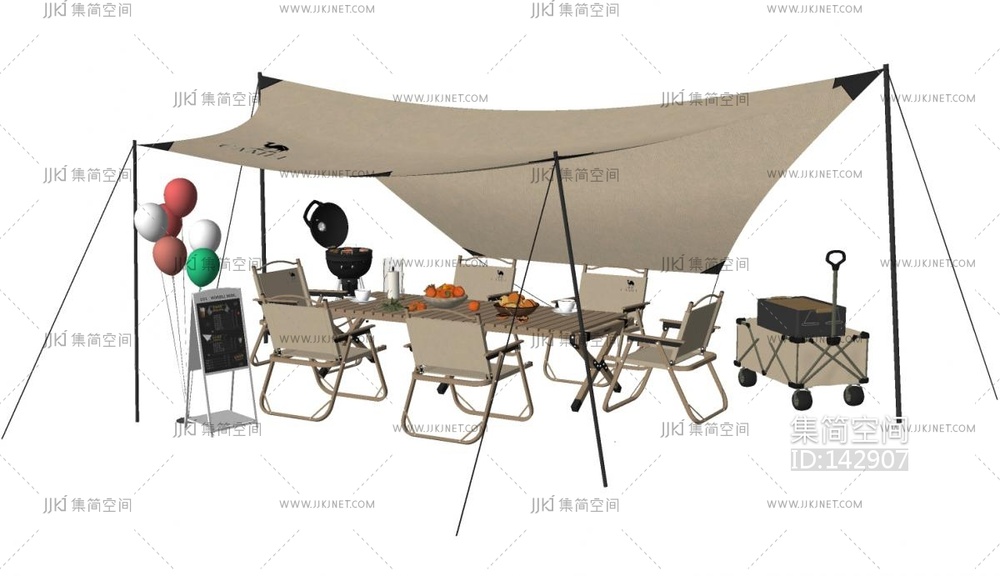 露营帐篷,户外露营桌椅SU模型 su草图模型下载 [模型ID:142907]