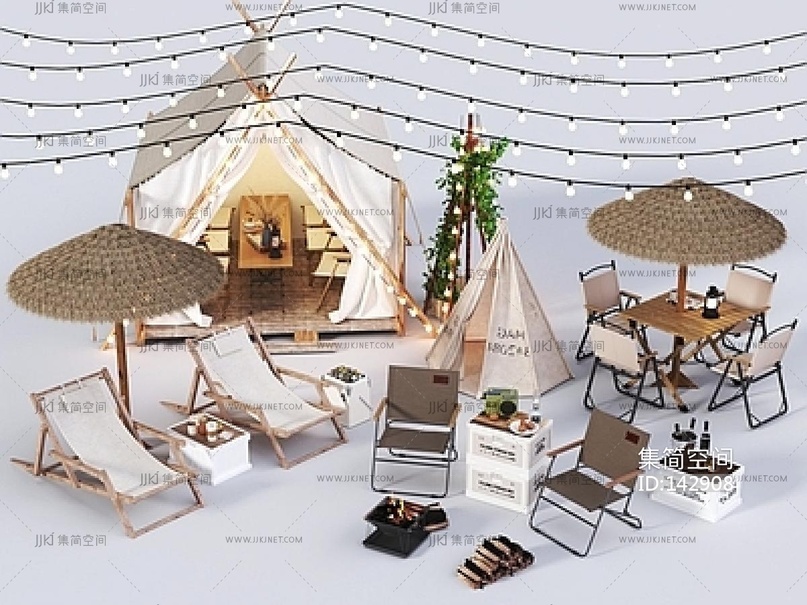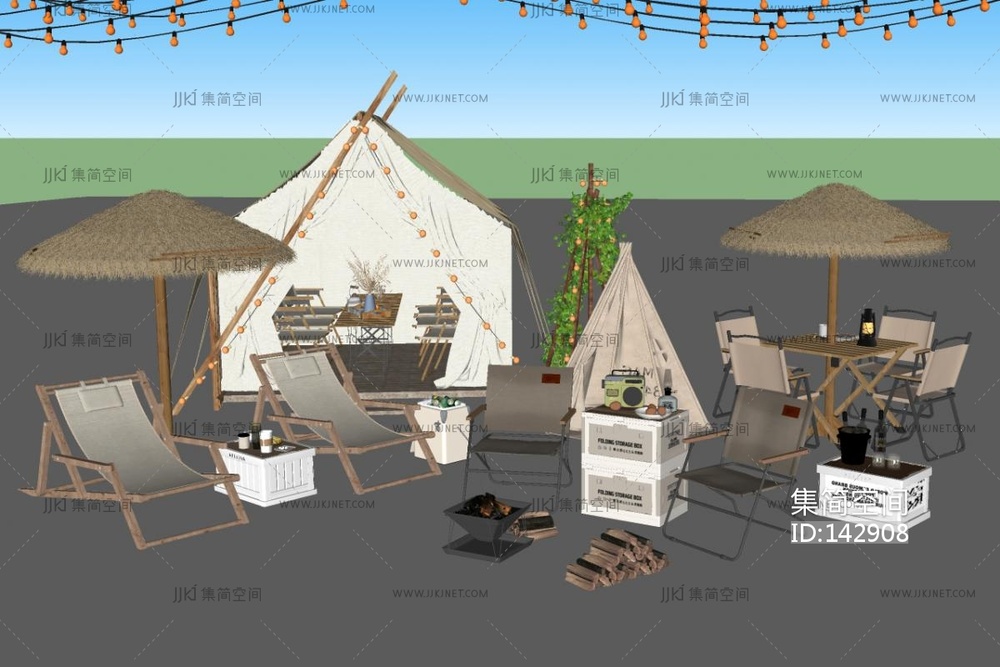 现代户外露营帐篷,露营桌椅组合SU模型 su草图模型下载 [模型ID:142908]