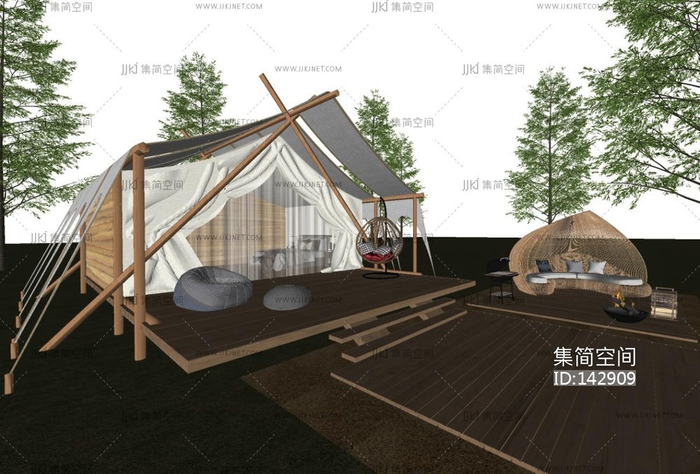 户外露营帐篷,休闲沙发SU模型 su草图模型下载 [模型ID:142909]