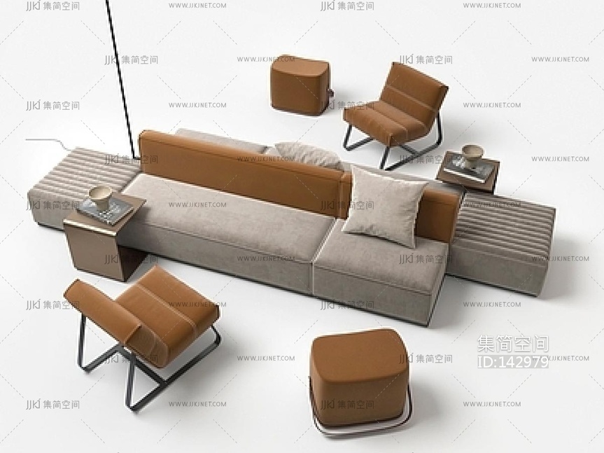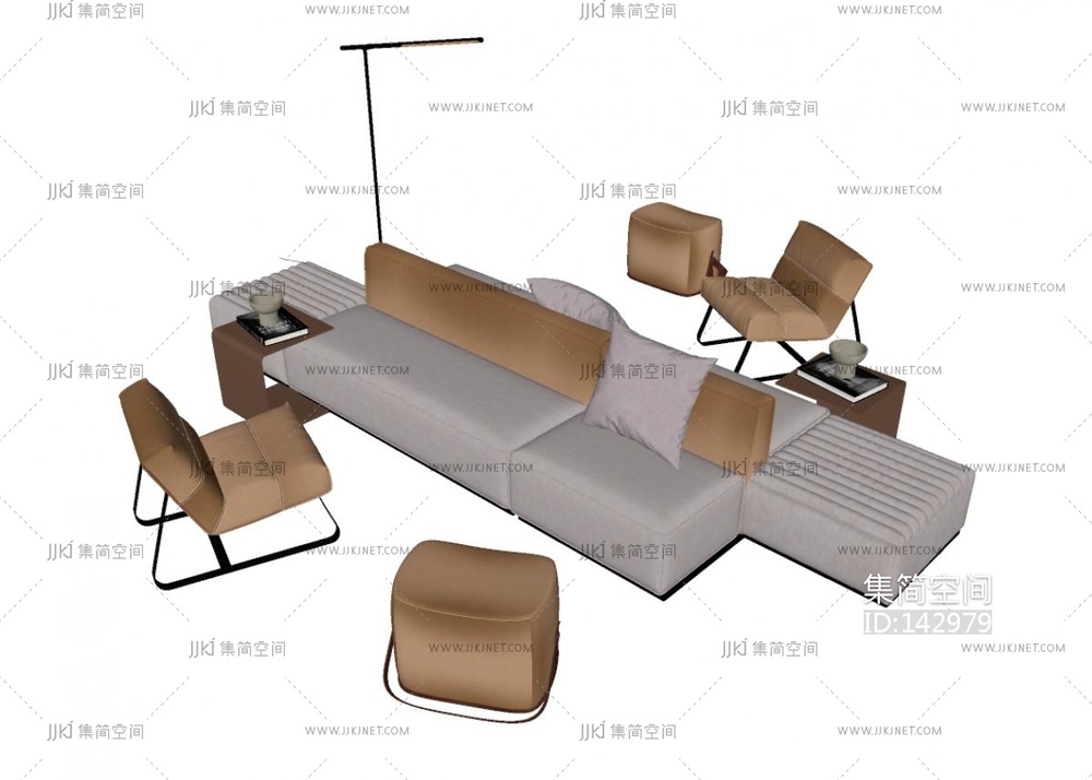 现代休闲区沙发卡座SU模型 su草图模型下载 [模型ID:142979]