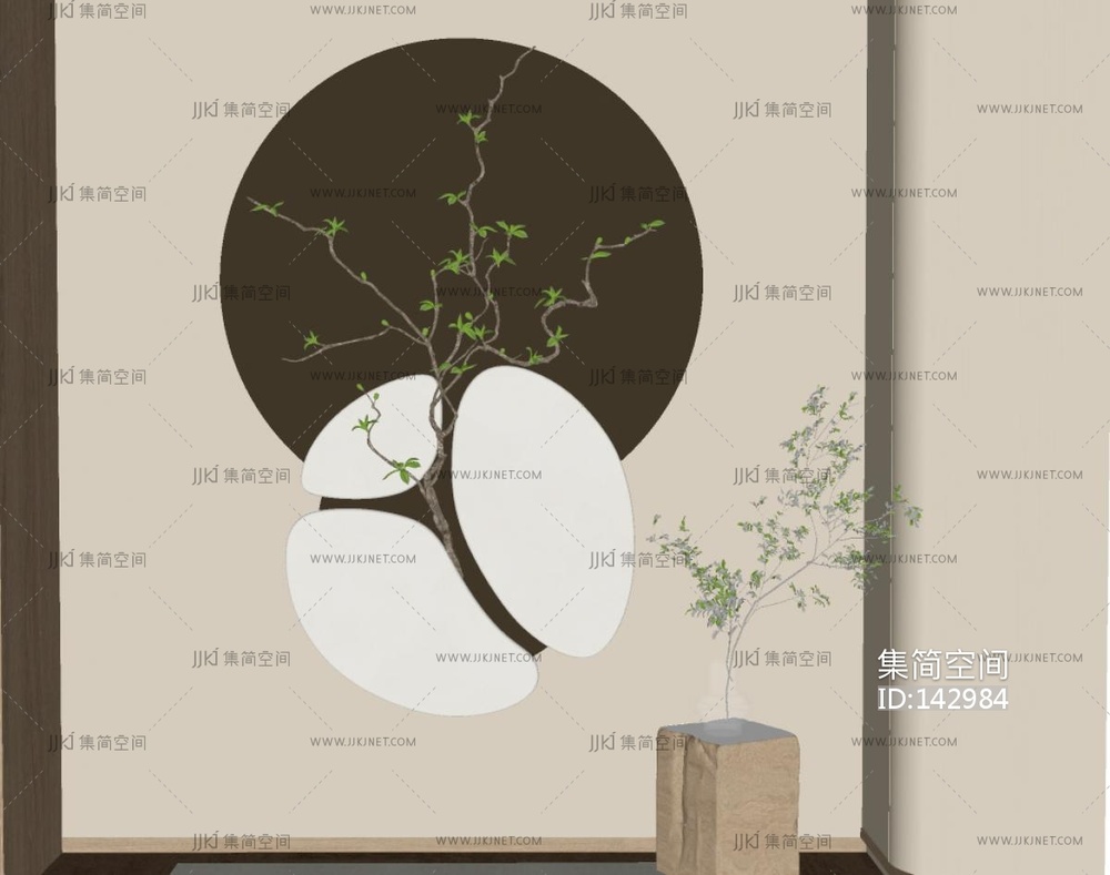 新中式墙饰挂件SU模型 su草图模型下载 [模型ID:142984]