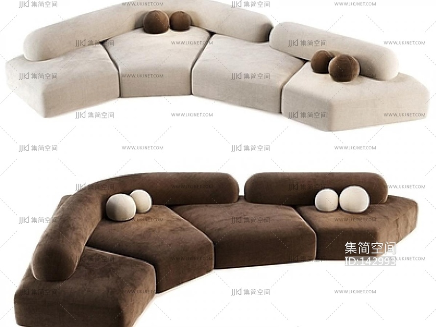 现代异形绒布沙发su草图模型下载