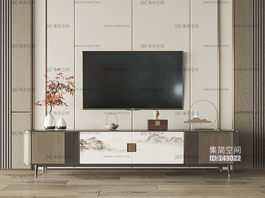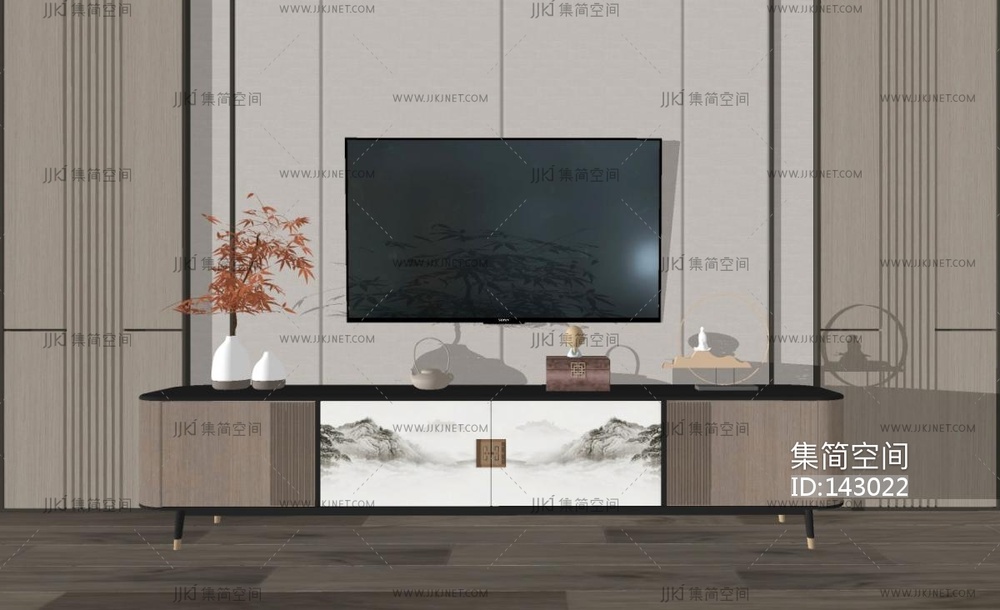 新中式电视柜SU模型 su草图模型下载 [模型ID:143022]