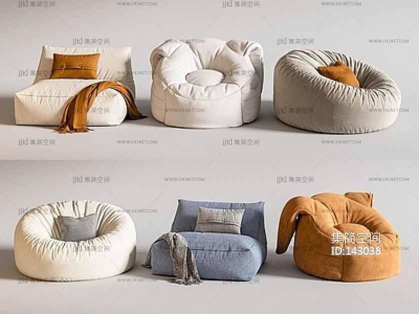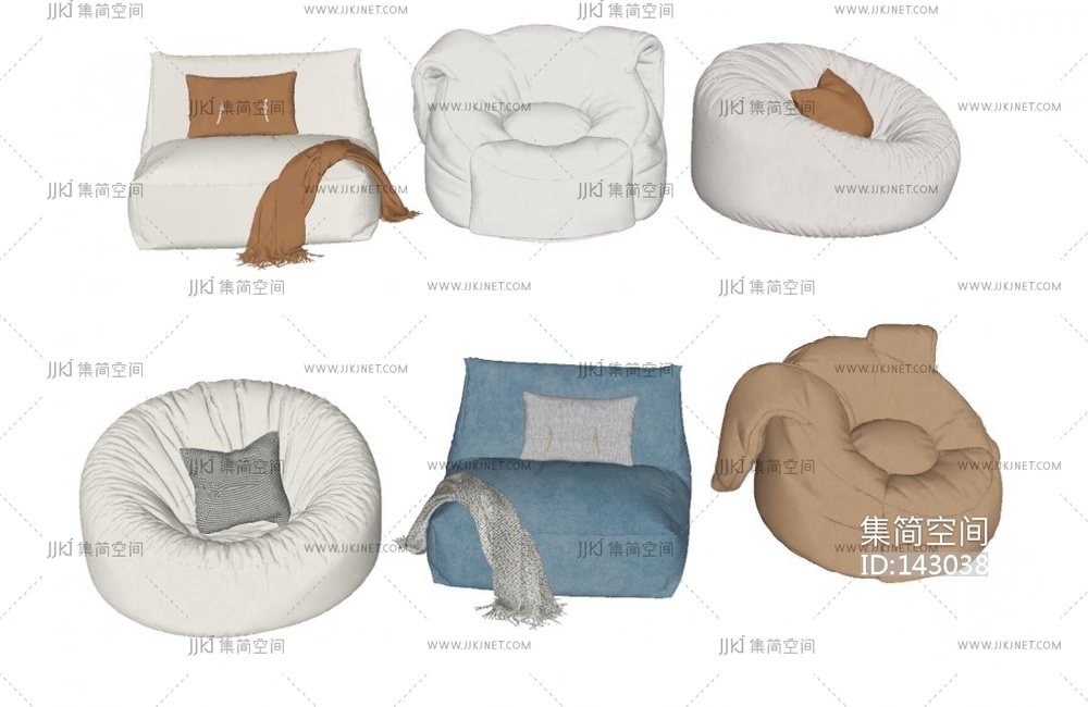 05现代懒人沙发_米灰色懒人沙发su模型su草图模型下载