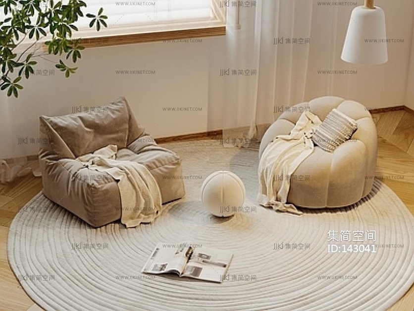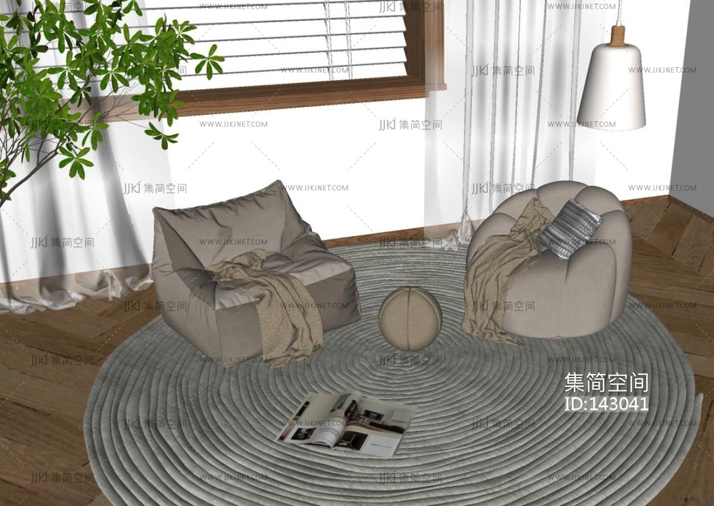 05现代懒人沙发_米灰色懒人沙发su模型su草图模型下载