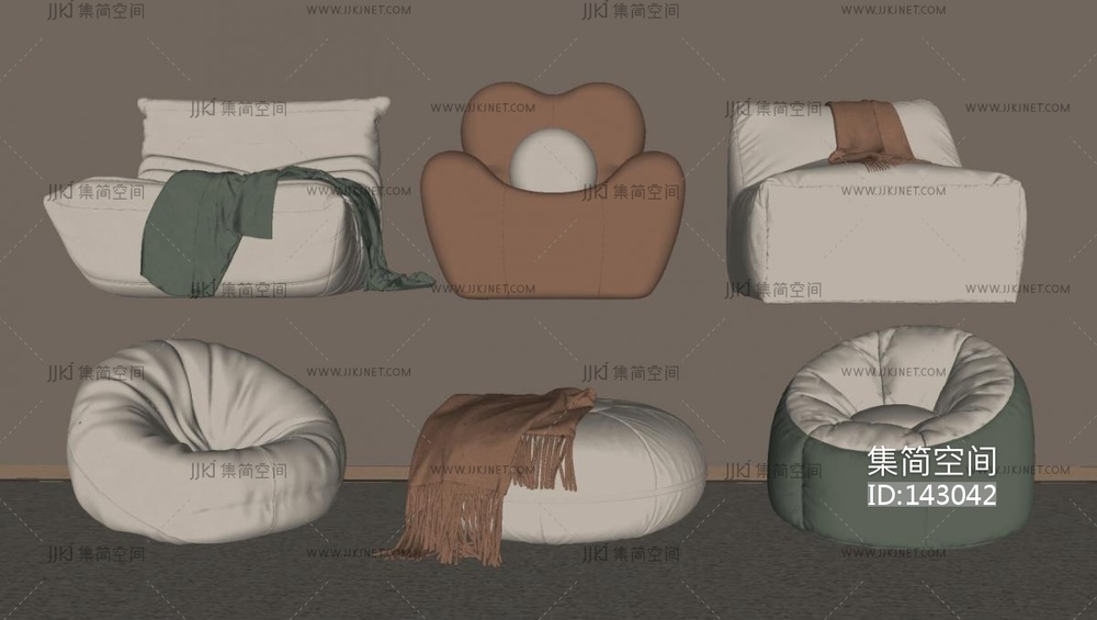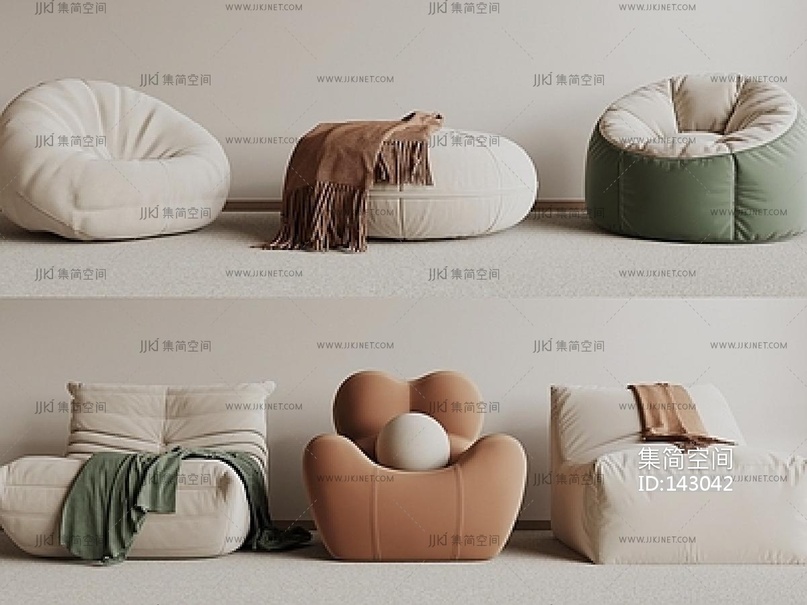 05现代懒人沙发_米灰色懒人沙发su模型su草图模型下载