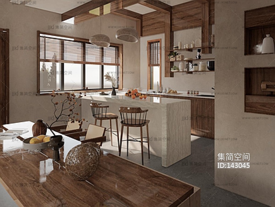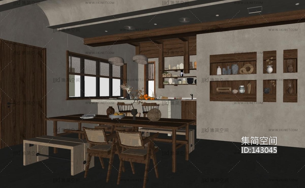 侘寂风开放式厨房SU模型 su草图模型下载 [模型ID:143045]