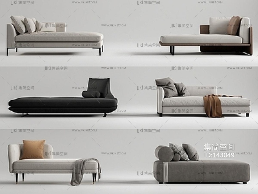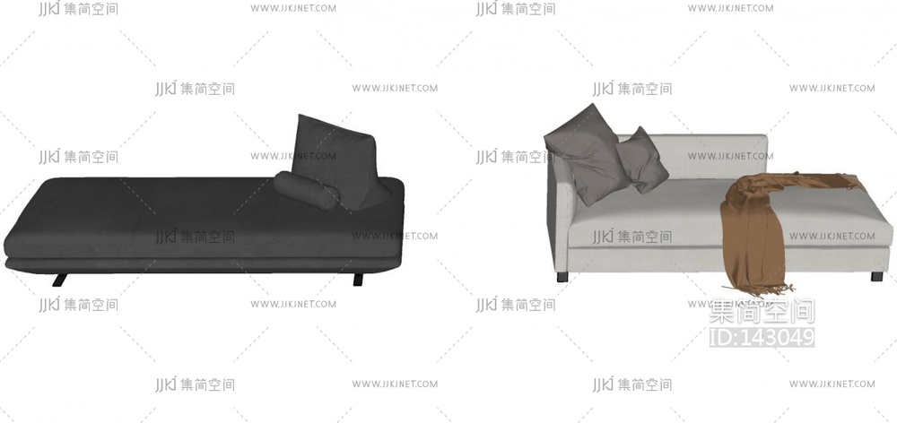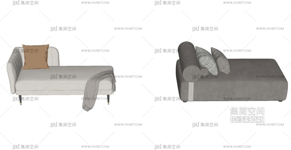 现代贵妃椅组合SU模型 su草图模型下载 [模型ID:143049]