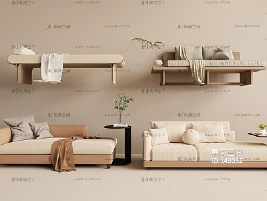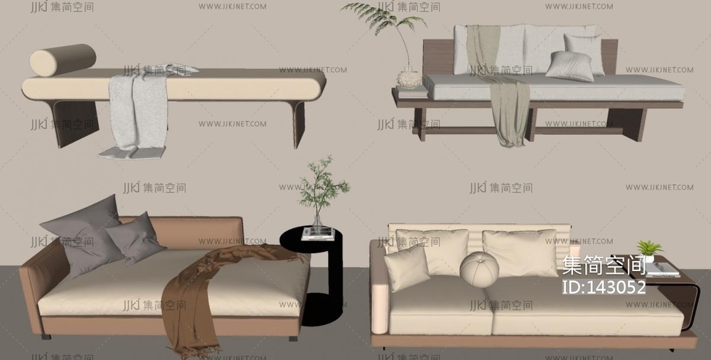现代贵妃椅组合SU模型 su草图模型下载 [模型ID:143052]