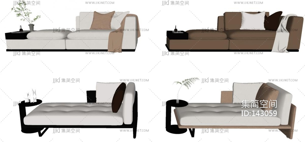 现代贵妃椅组合SU模型 su草图模型下载 [模型ID:143059]