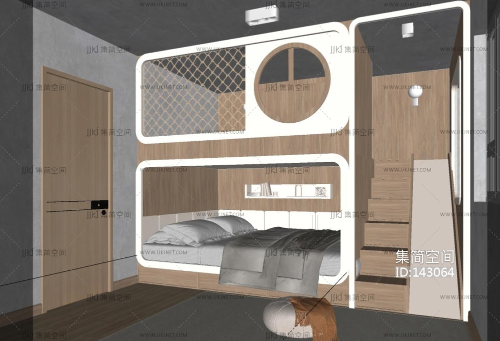 现代北欧风儿童双层床,上下床SU模型 su草图模型下载 [模型ID:143064]