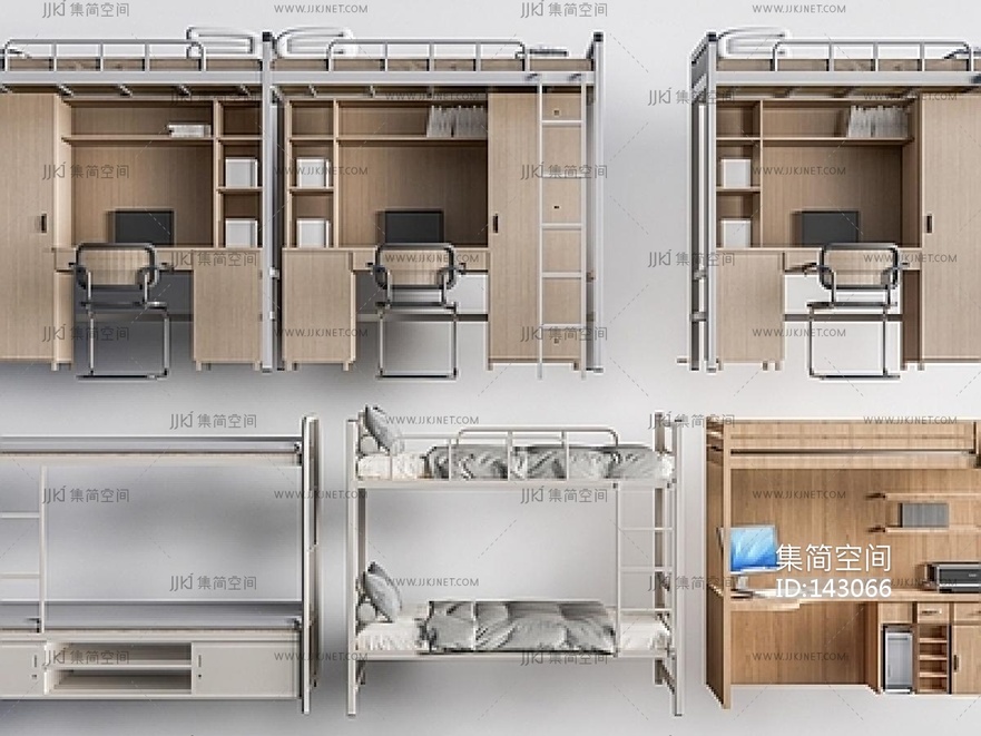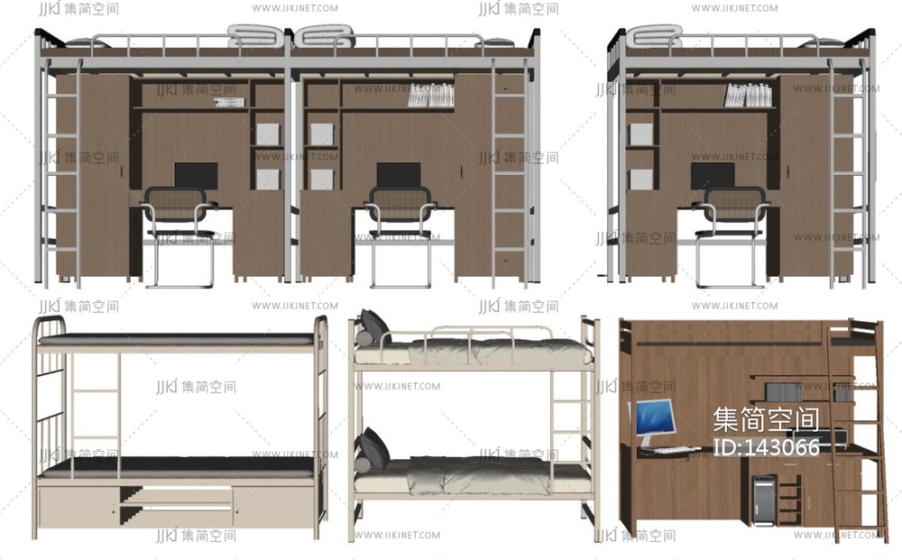 现代宿舍高低床,上下铺SU模型 su草图模型下载 [模型ID:143066]