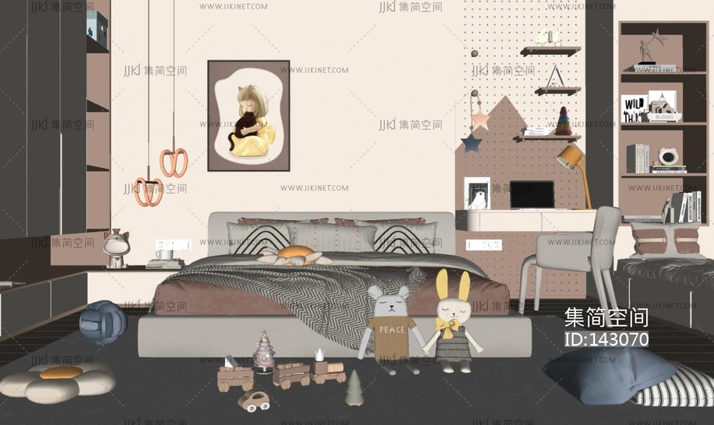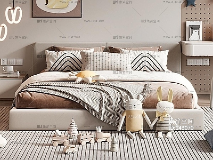 现代儿童双人床SU模型 su草图模型下载 [模型ID:143070]