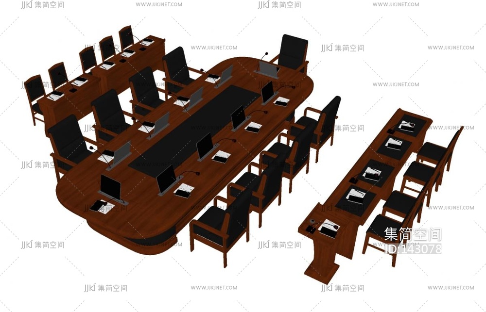 现代会议桌椅SU模型 su草图模型下载 [模型ID:143078]