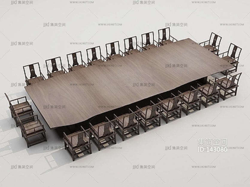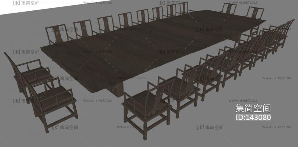 中式会议桌椅组合SU模型 su草图模型下载 [模型ID:143080]