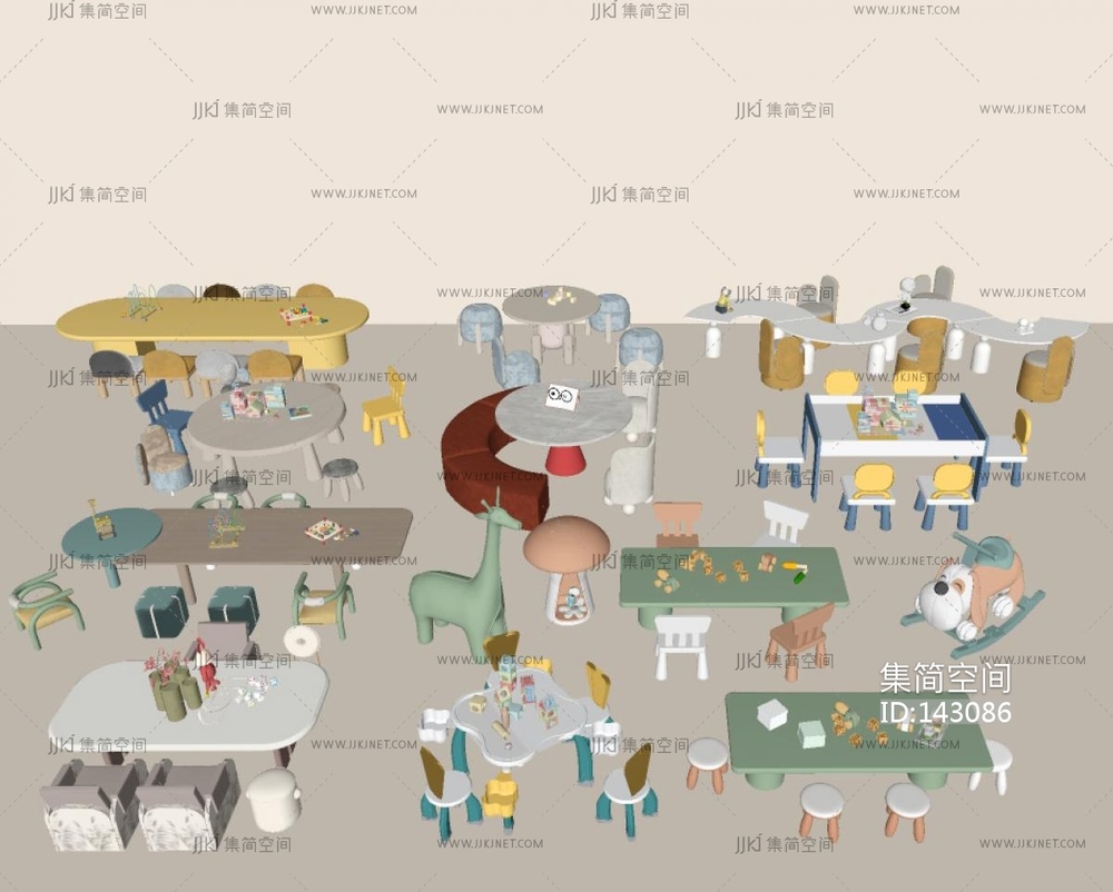 现代儿童桌椅组合SU模型 su草图模型下载 [模型ID:143086]