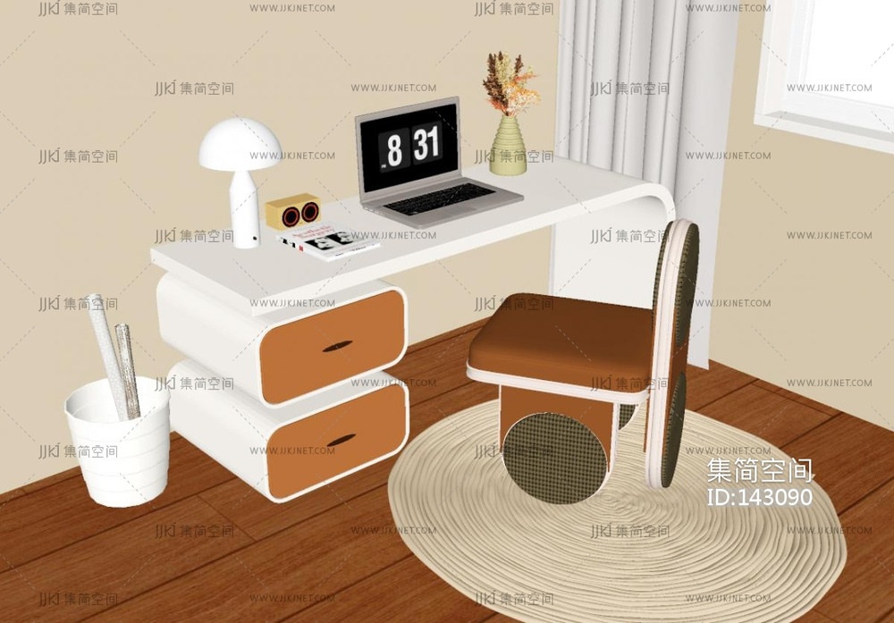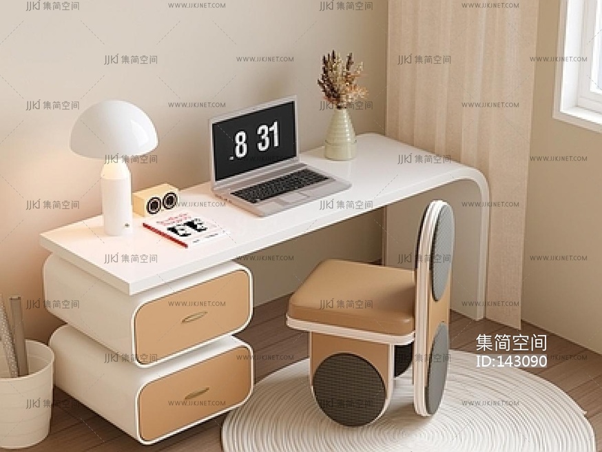 现代儿童书桌椅组合SU模型 su草图模型下载 [模型ID:143090]