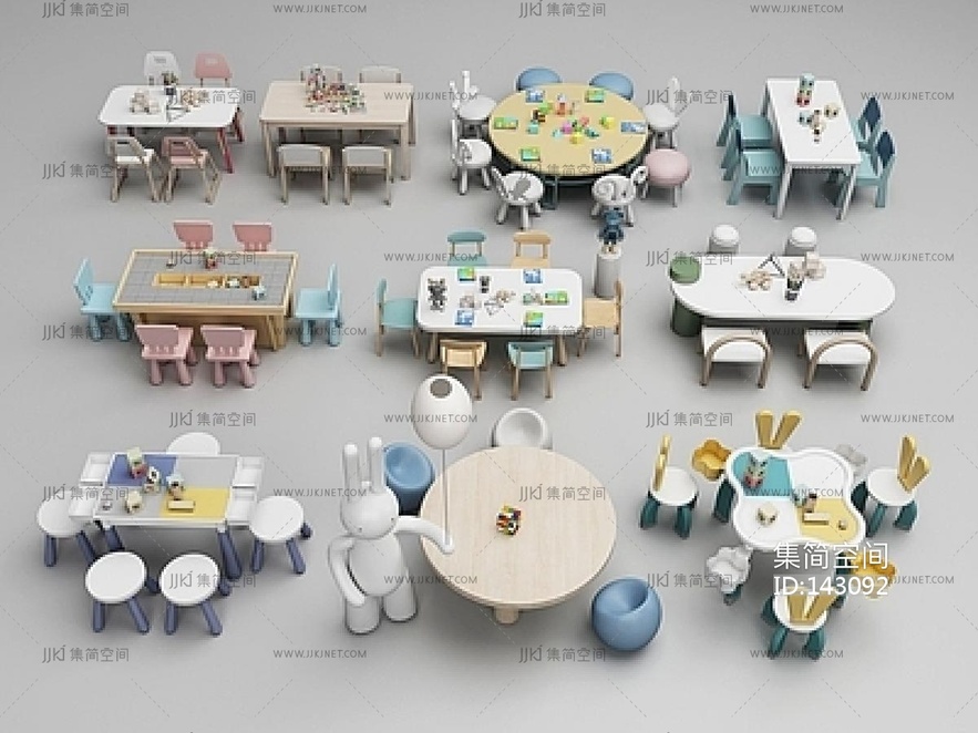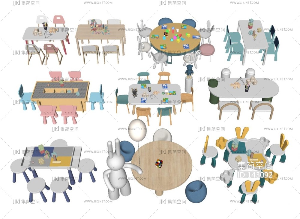 现代儿童休闲桌椅,积木桌椅SU模型 su草图模型下载 [模型ID:143092]