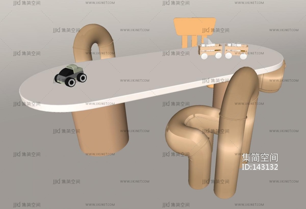 现代儿童桌椅SU模型 su草图模型下载 [模型ID:143132]