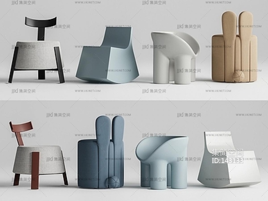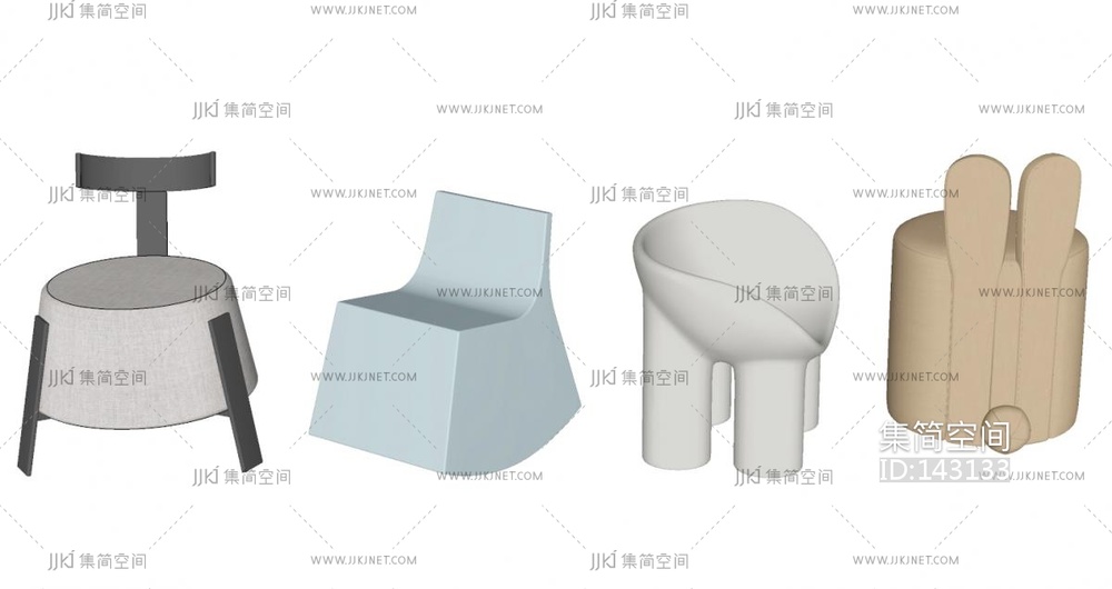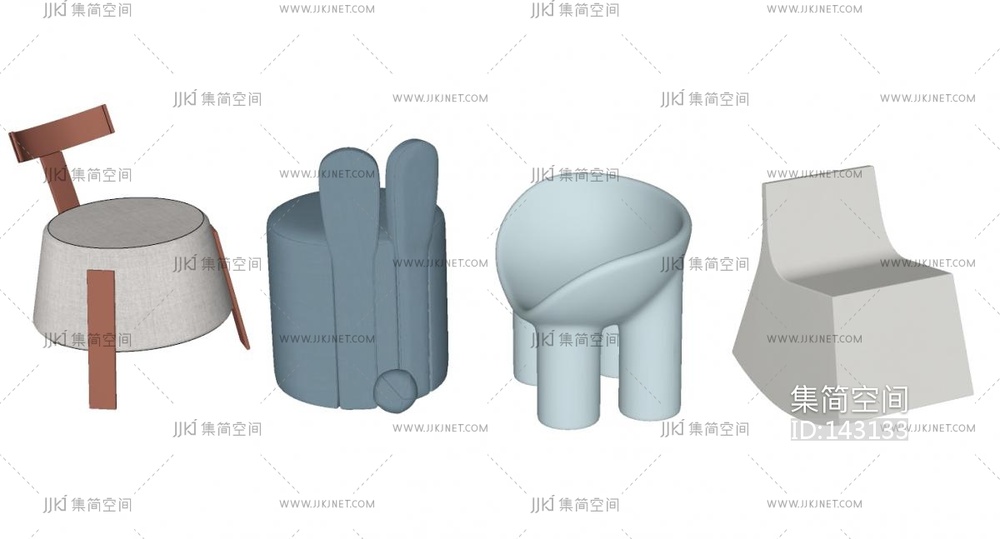 现代儿童椅组合SU模型 su草图模型下载 [模型ID:143133]